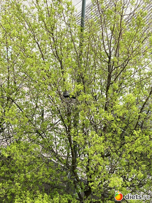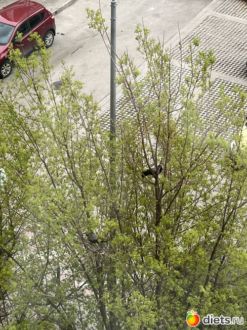 Несколько дней наблюдаю за коренными жителями Москвы, вот уж точно кто не в первом поколении здесь живет. Молодая пара ворон решила построить семейное гнездышко под нашими окнами. Сначала я не понимала, зачем молодая ворона пытается оторвать ветки на дереве. Два дня сидела и воевала с веткам, а потом эта пара притащила откуда-то провода и по мере своих возможностей крутили их. Два дня из-за плохой погоды стройка простаивала, погода улучшилась возобновились работы…