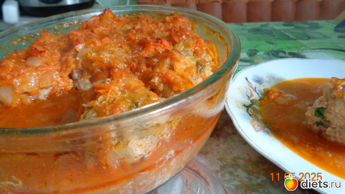 16. Накрыть фольгой форму. Запекать тефтели в духовке при 200 градусах 20 минут.