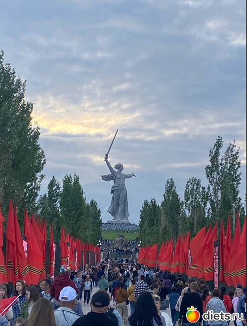 В Волгоград приехали не поздно, припарковались почти у Мамаева кургана. Хорошо, что мы решили подняться к монументу накануне праздника. Сколько там народу!!!