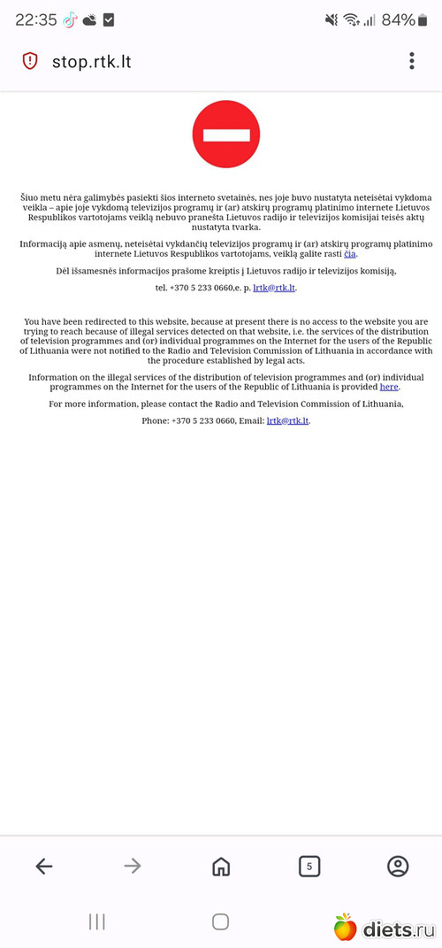 Вот такое сообщение, хоть через какой браузер смотри
