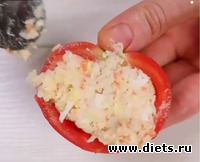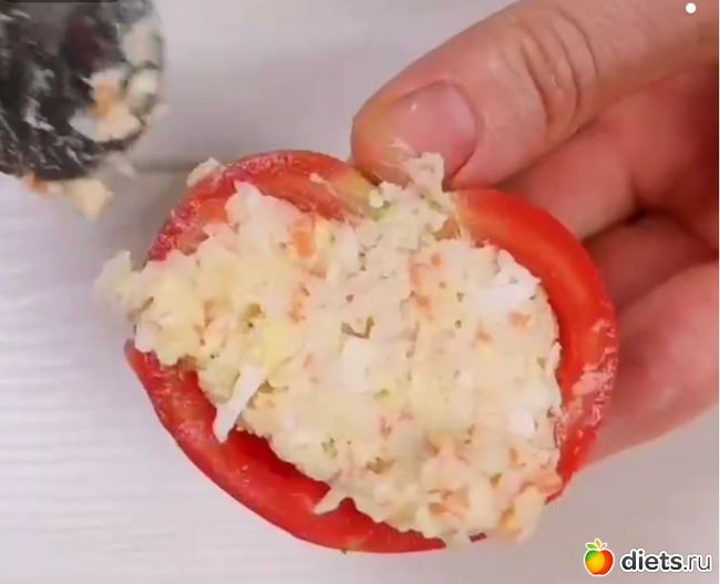 Нафаршировать половинки помидоров начинкой. Читать полностью