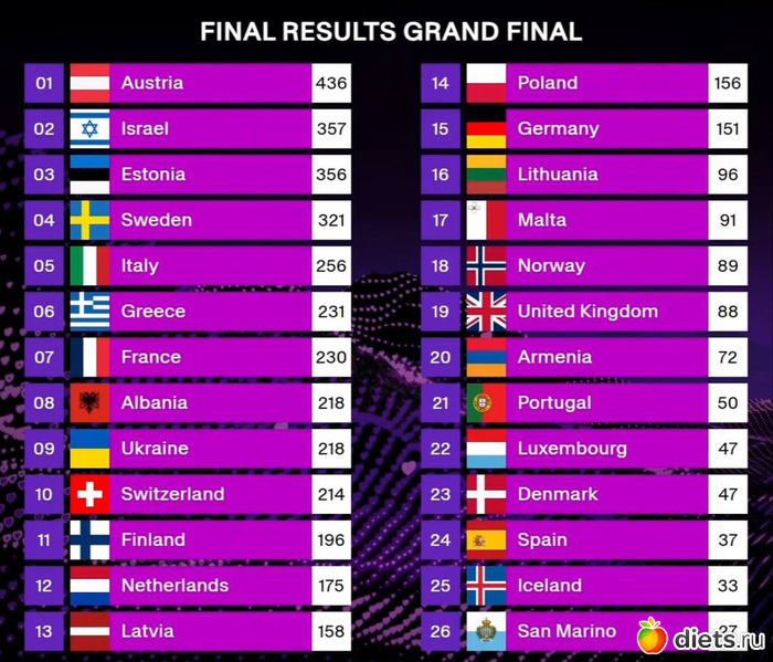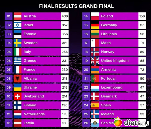 Норвегия (космические зумеры))) и Нидерланды (очень мелодичная песня селяви) ниже десятки , а хорошие песни у них. Очень меняет всё зрительское голосование. Украину (9) и Израиль очень подняло. а так телепались где-то внизу.