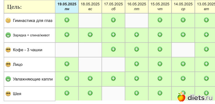 Сегодня нужно дотянуть до 17 и можно отмечать кофе - 3 чашки. После 17 места о чашечке пропадает.