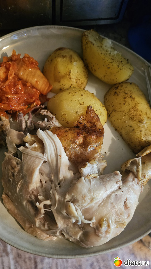 У: курица, запеченая в духовке, картошка, кимчи