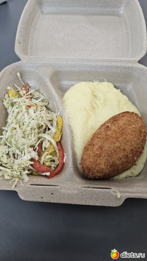 О: котлета по-киевски, пюре, салат