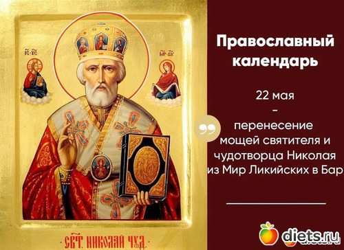 22 мая Русская Православная церковь отмечает память перенесения мощей святителя и чудотворца Николая из Мир Ликийских в Бар. Празднование было установлено еще в 1087 году.
