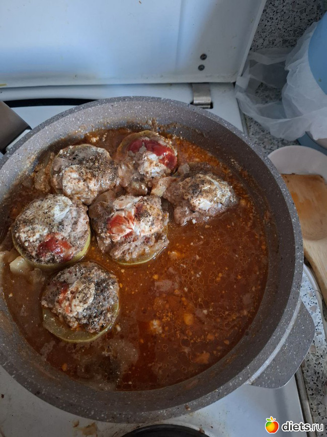 Наготовила вчера: мужу гречку с куриными шницелями (покупными), себе – кабачки с куриным фаршем