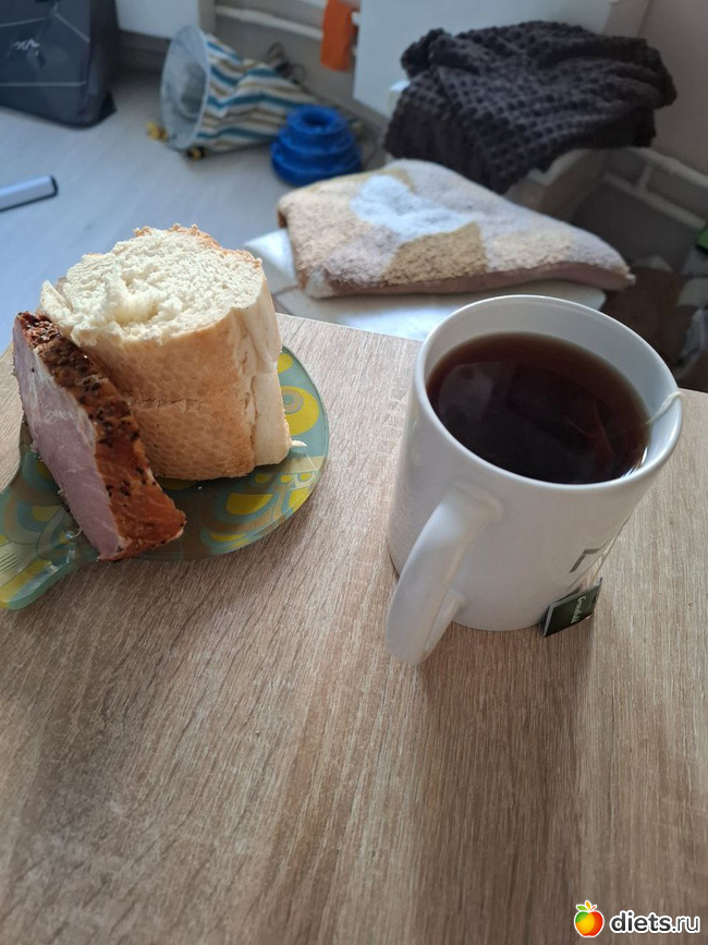 1 завтрак: чай, багет, мясо копчёное