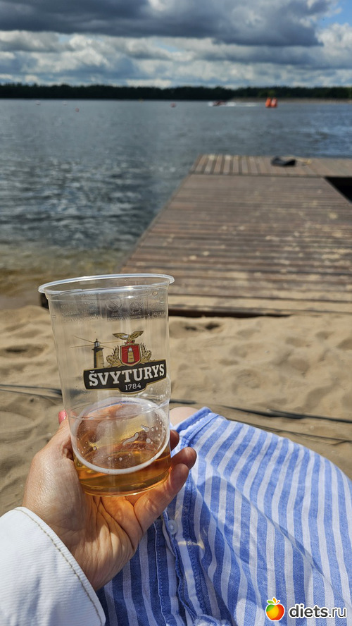 Очень даже неплохо посидели, в бокале б/а пиво. Солнечно, водичка, песочек, не жарко