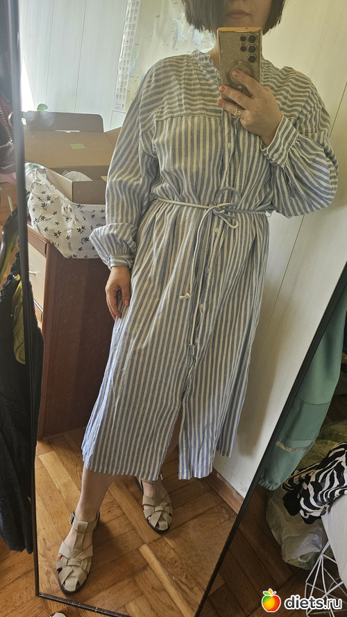 Для этого мероприятия я выбрала платье изо льна в маринистическом стиле
