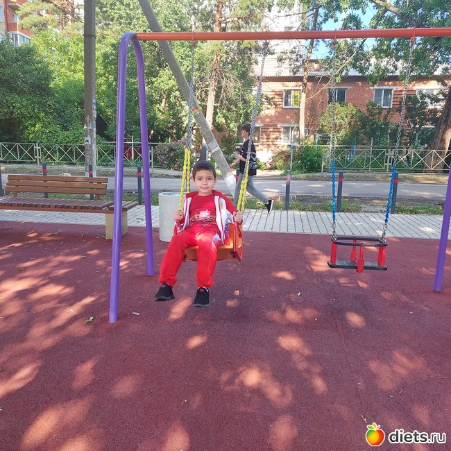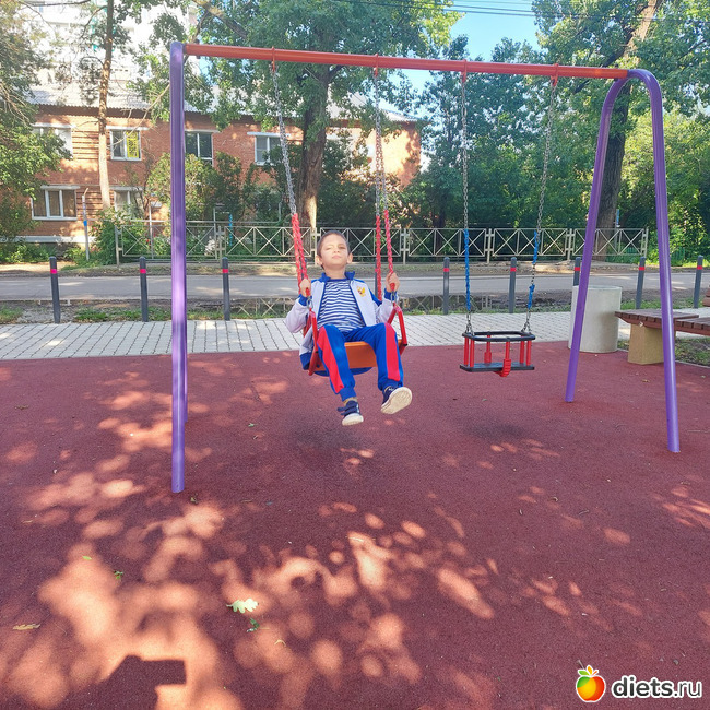 Шли в цирк мимо детской площадки. после дождя грязновато на горках было, только качели чистые были