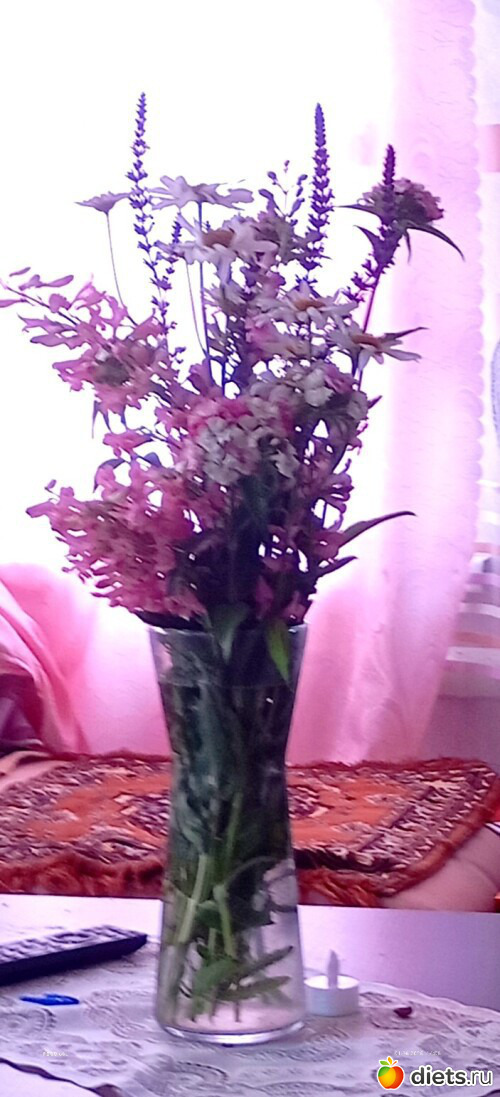 Вчера срезала замечательный букет из пенстемона, ромашек и шалфея. Мне очень понравился