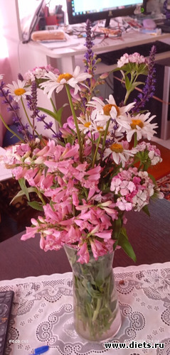Вчера срезала замечательный букет из пенстемона, ромашек и шалфея. Мне очень понравился