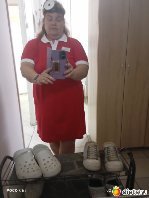 Надела сегодня на работу платье-поло, которое купила вместо халата. Один слой одежды на лето- это лучше двух. Можно, конечно снять платье и халат надеть на белье, но все равно придет надевать юбку, иначе полы халата бесстыдно показывают ноги до самого некуда. Так что решила перейти на платье. Я вообще трикотаж обожаю. (фото из раздевалки, на фоне обувницы )