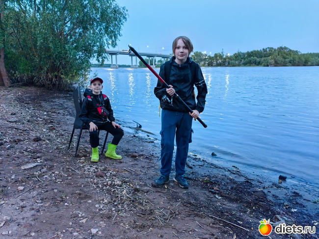 Гриша вчера с другом-одноклассником ходил на рвбалку. Сначала пытались уйти одни "чтобы рыбачить сетями", но тут родители встали единым фронтом против и отец друга согласился их сопровождать с удочками. Ездили на велосипедах на реку Самарку, это отнюдь не близко. Гриша проявил удивительную практичность, сам обулся в резиноаые сапоги и взял ветровку. Довольны были дети выше крыши. И настолько же утомлены. Но счастливы.