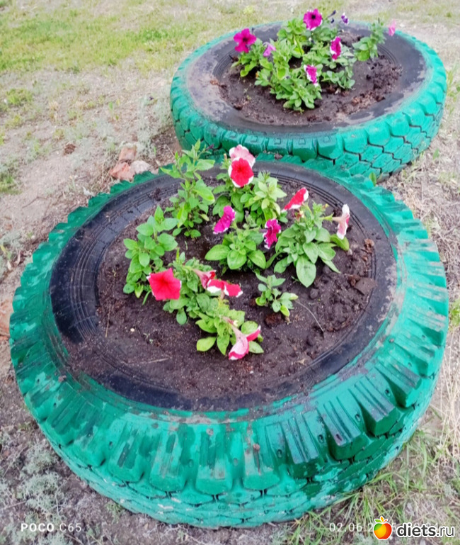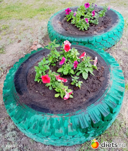 Красивый такой цвет получился у клумбы из больших шин.