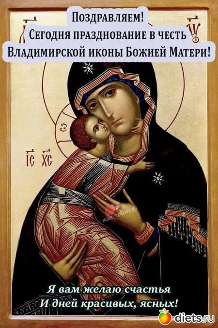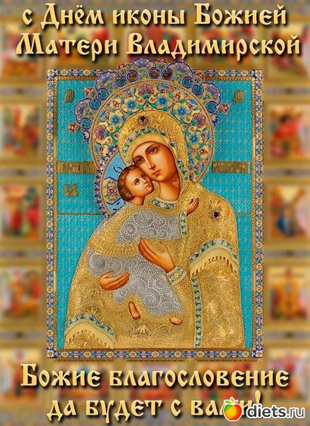 Так появились три дня, посвящённые Владимирской иконе Божьей Матери, которые отмечаются и поныне православной церковью, — это 3 июня, 6 июля и 8 сентября по новому стилю. По старому стилю, соответственно, даты такие: 21 мая, 23 июня и 26 августа. Каждая из них связана со спасением Москвы от захватчиков благодаря заступничеству Богородицы: 3 июня 1521 года — от хана Мехмеда Гирея, 6 июля 1480 года — от хана Ахмата, а 8 сентября 1395 года — от Тамерлана.