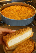 Дно формы застелите пергаментом. Выложите половину песочной крошки, затем творожную массу и сверху оставшуюся крошку.