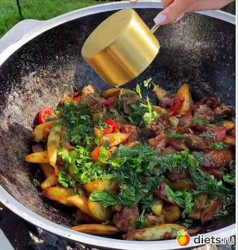 1. Картофель чистим и нарезаем дольками. Готовим на сильном огне до румяной корочке. Солим и убираем.