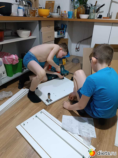 А вообще внуки такие молодцы! Сами собрали задвижные ящики для кухни