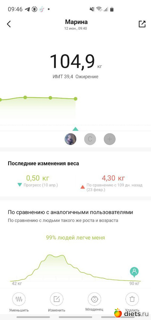 Так вот ,вес не достиг того , с которого ушла на прошлой неделе , не хватило 100 гр.