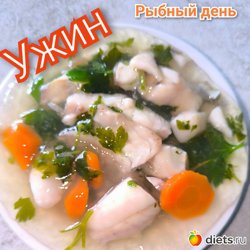 Уха : минтай 320гр , луковица , морковь ,петрушка соль