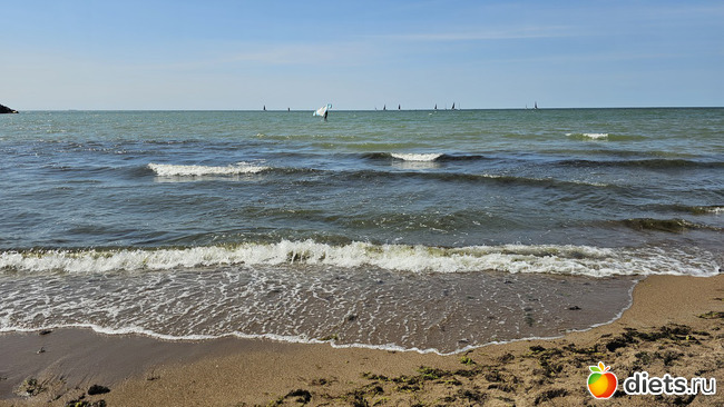 Погода была отличная для этого, +18. В жару я бы не поехала. Температура воды +13. Муж с сыном планировали купаться, но все-таки не решились