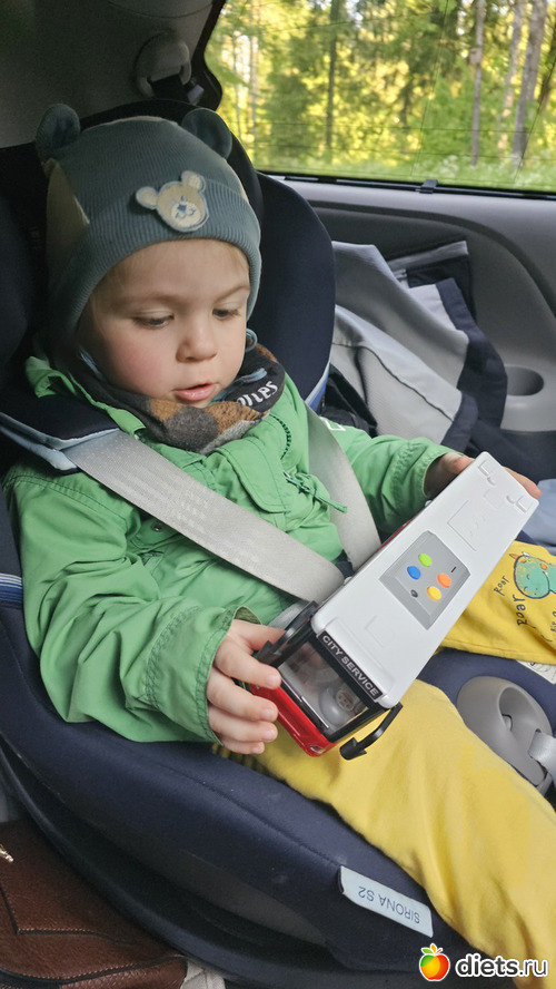 Мы доехали хорошо, малышок поспал, потом был занят новой игрушкой