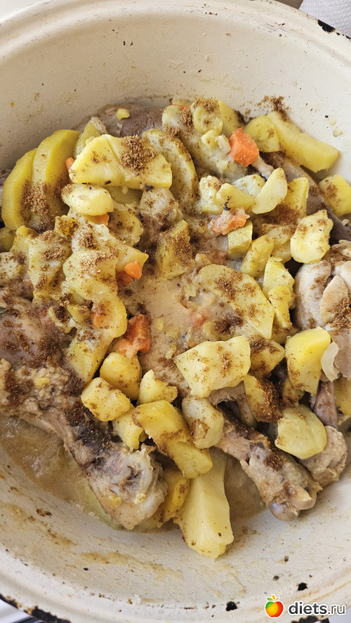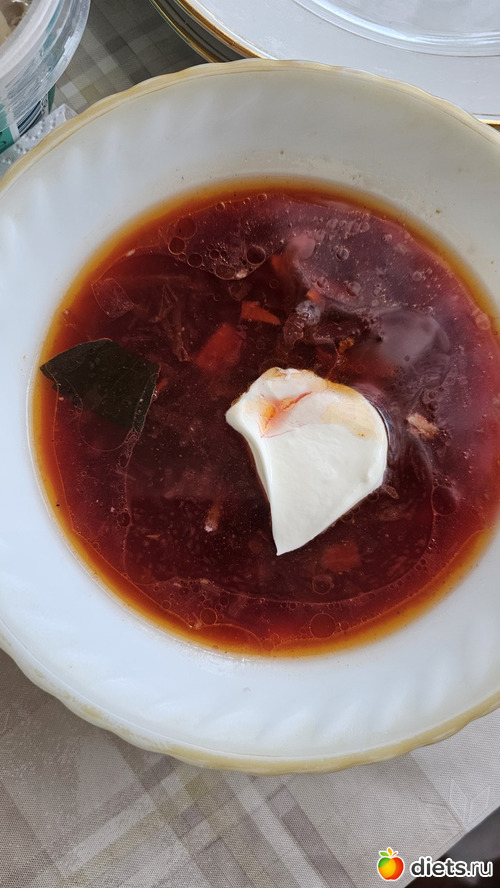 Ну а тем временем мама нас угощала (борщ, тушеная с картошкой курица, наполеон)
