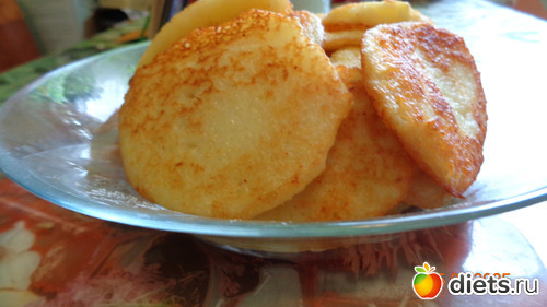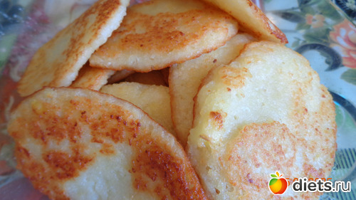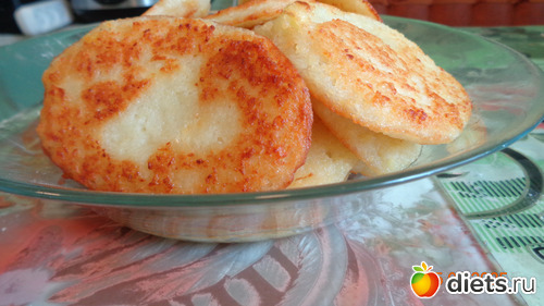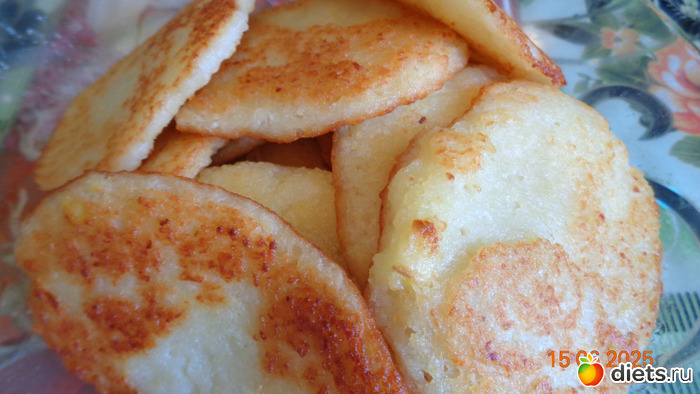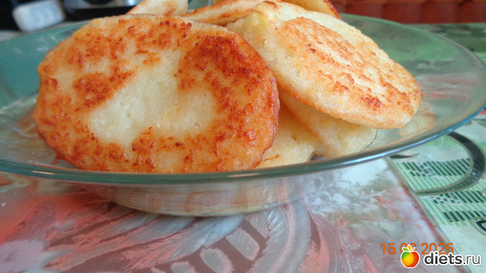 6. Выкладываем тесто на сковороду ложкой, формируем круглые драники. Обжариваем на среднем огне примерно по 2 минуты с каждой стороны.