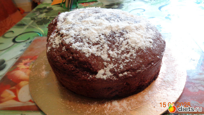 5. Теперь хорошо перемешиваем все ингредиенты во второй ёмкости, которую мы заранее подготовили. Заливаем пирог шоколадной смесью и оставляем на 40-60 минут в закрытой выключенной духовке или мультиварке. (Можно оставить пирог на ночь, так он будет еще вкуснее и сочнее.)