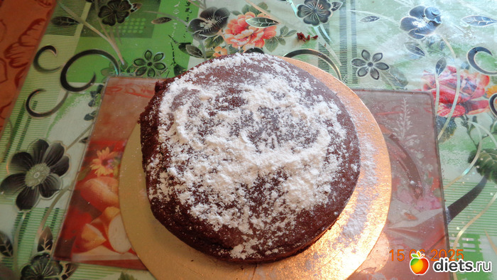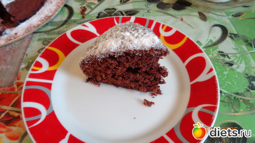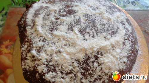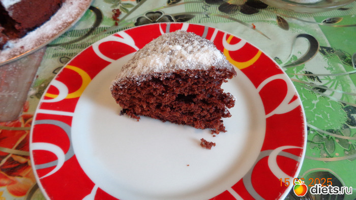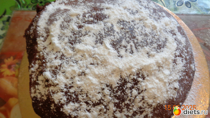 6. Шоколадный пирог подаем на тарелочке, присыпав края сахарной пудрой.