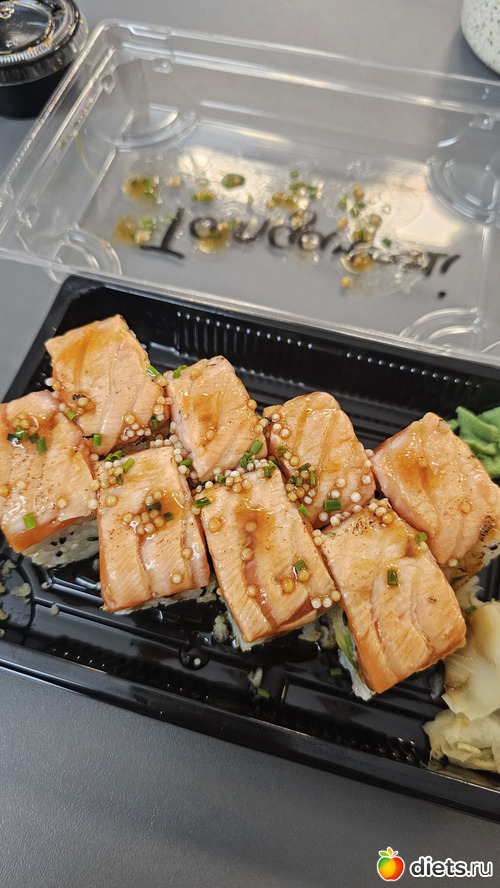 Не знаю, может у вас порции другие, здесь было грамм 150 - 200 всего, если б я ела лосось с рисом, одного лосося взяла бы грамм 300