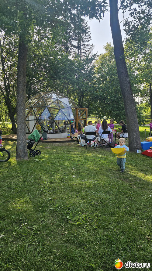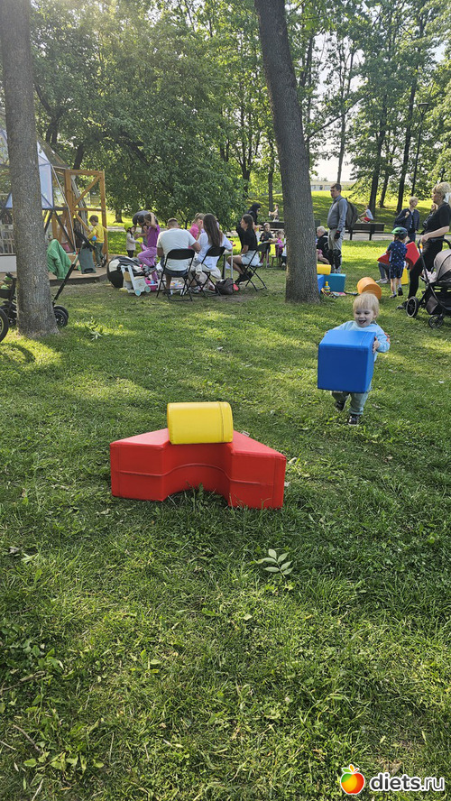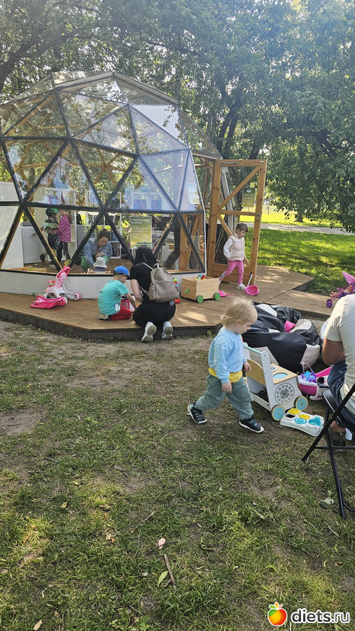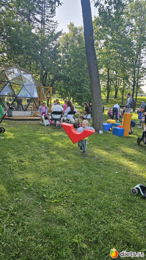 Домой шли через парк, там вокруг летней библиотеки игрушек наложили, малышок застрял, надолго