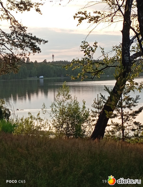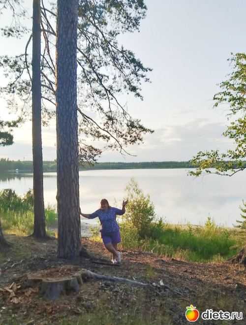 Вчера хорошо погуляли до соседней турбазы. Там классная скамеечка у воды и солнце на закате освещает берег (озеро все-таки округлое). А у нашего санатория лес солнце загораживает. А у турбазы сосны немножко "отбежали" от берега.