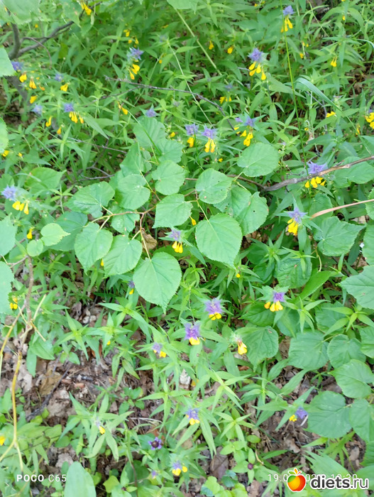 Интересные цветочки растут в лесу, сверху синие, ниже желтые Гугл сказал, что это марьянник дубравный.