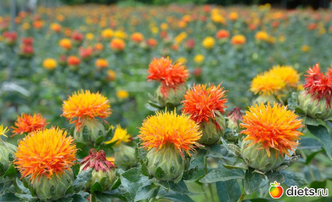 Сафлор – засухоустойчивая масличная культура, которая может давать стабильный урожай маслосемян с содержанием масла 33–38%. Пищевое сафлоровое масло является лидером по содержанию линолевой кислоты. одно из древнейших культурных растений. Его начали возделывать еще в Древнем Египте, где он использовался для окрашивания тканей. Оно относится к семейству Астровые и внешне напоминает чертополох или миниатюрный подсолнечник. источник натуральных красителей, которые используются в пищевой и текстильной промышленности для получения желтых и красных оттенков.. Как замена или подмена пурпура (т. н. «псевдопурпур»)