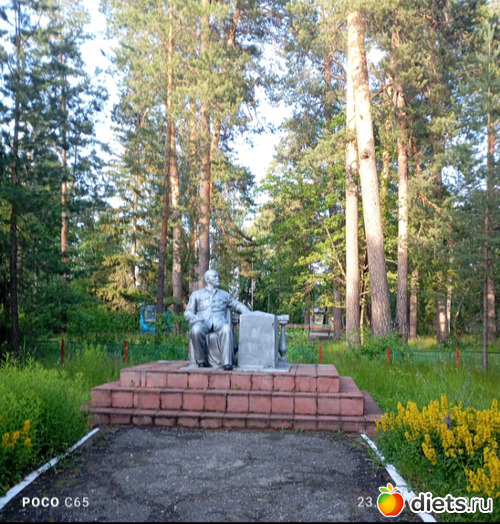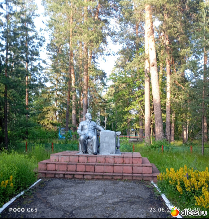 Памятник напомнил постаментом и расположением тот, что у нас рядом с дачей в санатории сохранился. Чехову. Напротив центрального входа в санаторий, с вымощенной дорожкой ровно до него, а сзади лес)