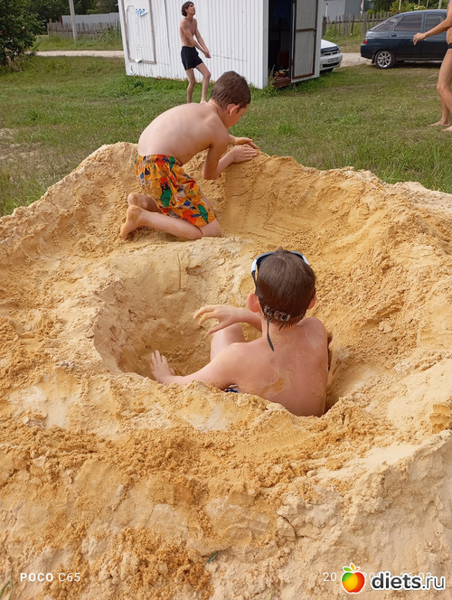 Вчера ездили в Балашейку на озеро. Далековато и несколько напряженных перекрестков по пути. Но оно того стоило. Набрали воды из родника, накупались в озере. Озерцо маленькое, но сызранские Мальдивы: белый песок и теплая вода. Пацаны оторвались: на куче песка выстроили крепость, и почему-то посередине опять отрыли яму приличную, если садились в нее, то по плечи, а стоя выше колен. В общем, для полного ребячьего счастья на пляже должен быть песок, чем больше, тем лучше.