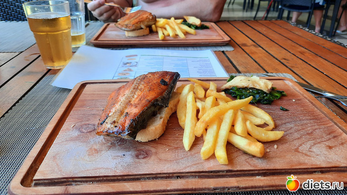 Было много рыбы, разной. Это для отелей показатель. Показатель у нас в этом плане был просто вау. Начиная с основного ресторана, там каждый день было по мин. три вида разной рыбы: гриль, жареная, пареная... заканчивая снэк-баром при выходе на пляж. Там всегда был лосось. Готовый сэт. Мы им частенько грешили даже в ущерб основному ресторану. раз в неделю был полностью рыбный день. вплоть до суши и роллов. Так что рыбы я там объелась и в конце уже смотреть на неё не могла)))) вот морепродуктов было маловато, это да. Что тоже для меня пофиг, чес. Когда столько всего другого, вкусного и неизведанного)))