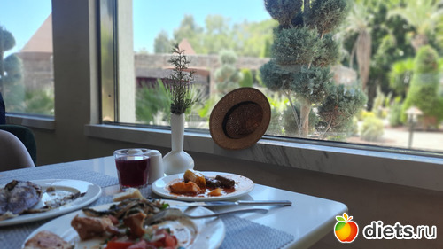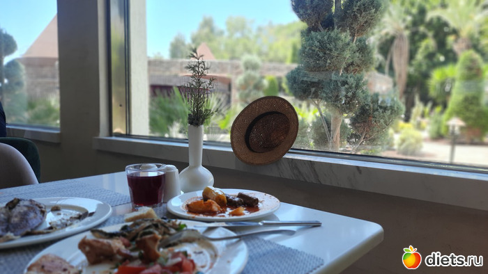 А, ещё про салаты. Как-то я не поняла их... все ингредиенты отдельно, собирай свой салат и заправляй заправками, там их много, только вот они не подписаны... А мужу было мало жидкого. Всего два супа на выбор. И они ему оба не понравились. Наверное, турки не очень любят супы...