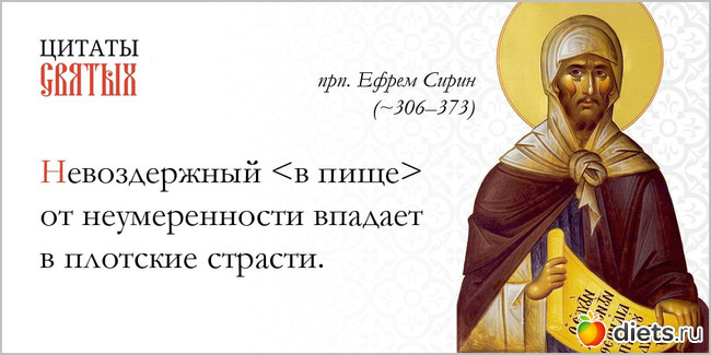«Доколе мы не смирим угнездившегося в нас врага, а именно нашу склонность к обжорству, мы не сможем устоять в духовной битве».