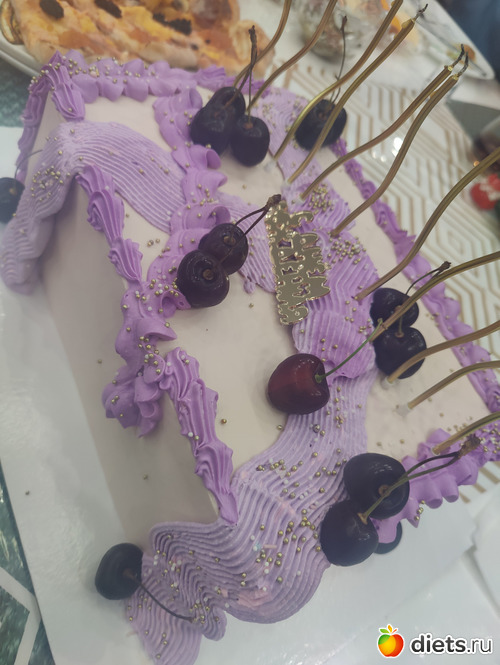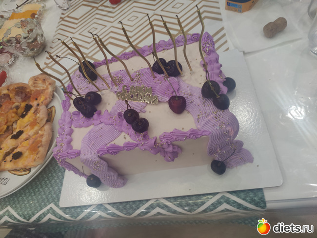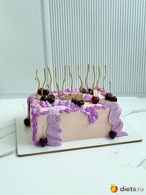 всегда удивляюсь её фантазии по украшению тортика у этом году удивил нежно лавандовый цвет.