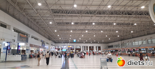 Он огромный. У него новый терминал. Вот в него нас и привезли. Но, как ни странно, столько указателей, такие целенаправленные потоки, такие понятные табло, что мы быстро сориентировались. Правда, очередь на регистрацию была огромной. Стоек у нашего перевозчика-море. Ну, постояли всё равно. Минут 40.