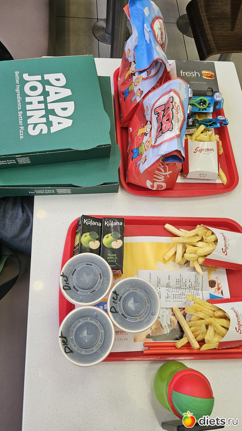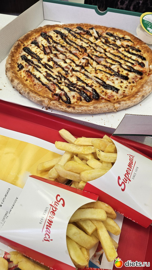 Я попробовала пиццу и фри. Есть не могу, только пробовать, мой организм не принимает такое. За вкус ничего не могу сказать, не люблю такую еду. Сыну понравилось очень