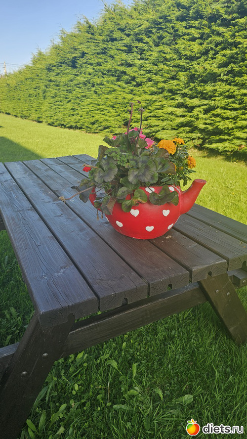 Красивый чайник-горшок с цветами. Апартаменты просторные.
