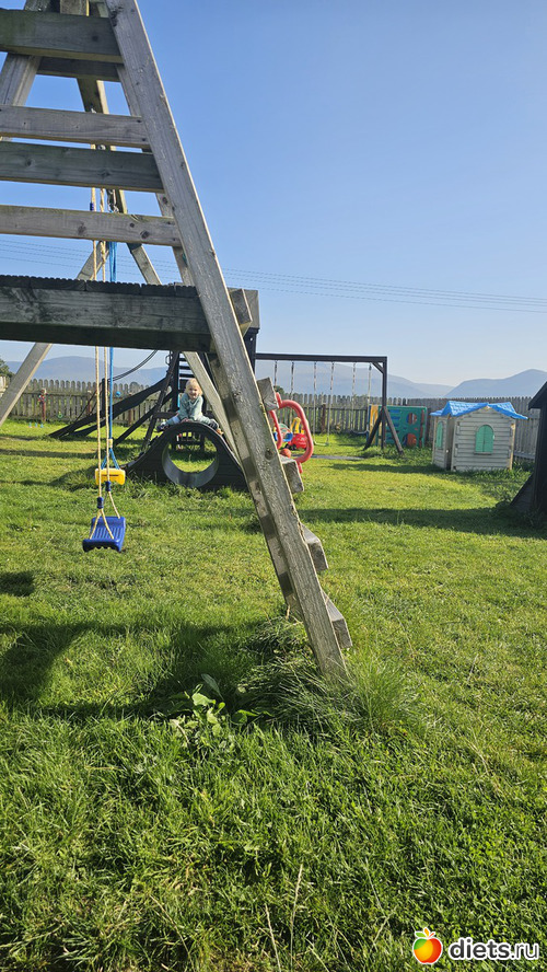 Отличная детская площадка с видом на горы, футбольное поле, баскетбольная площадка