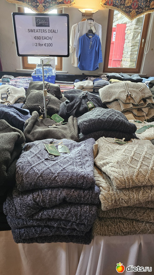 Аранские свитера по 50-60 евро, это дешево, на Аранских островах по 100 и больше