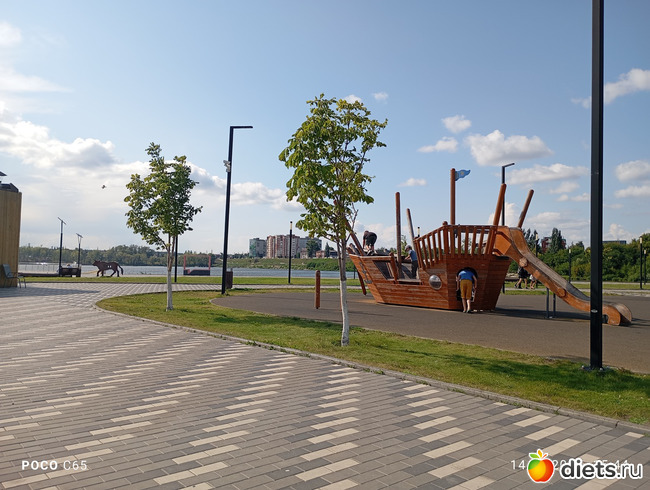 Вот и пятница. Вчера ходили с внуками на кремлевскую набережную. Мороженое, катание на машинках, бинокль, просто беготня. Кораблик на детской площадке без снастей остался, надеюсь, починят. Бревна подвесные демонтированы, по ним интересно было лазить. Ветер был сильный, но тепло. Хорошая вышла прогулка.