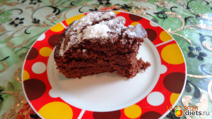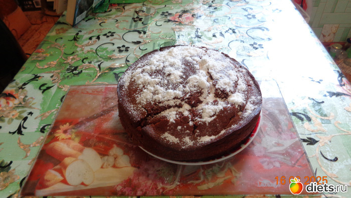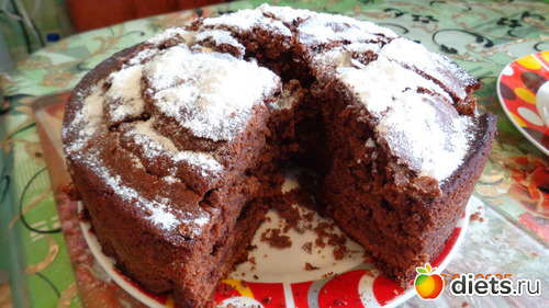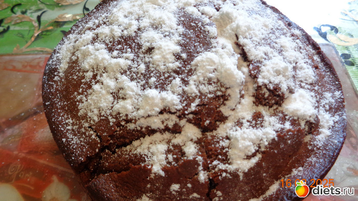 6. Шоколадный пирог подаем на тарелочке, присыпав края сахарной пудрой.